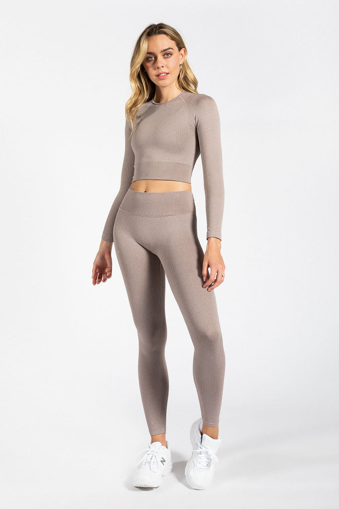 Seamless Ribbed Crop Long Sleeve in Espresso