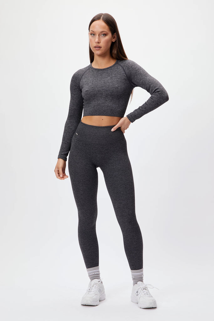 Seamless Ribbed Long Sleeve Crop Top in Charcoal
