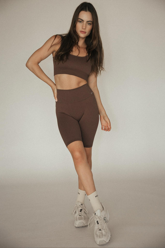 Seamless Ribbed Biker Short in Chocolate