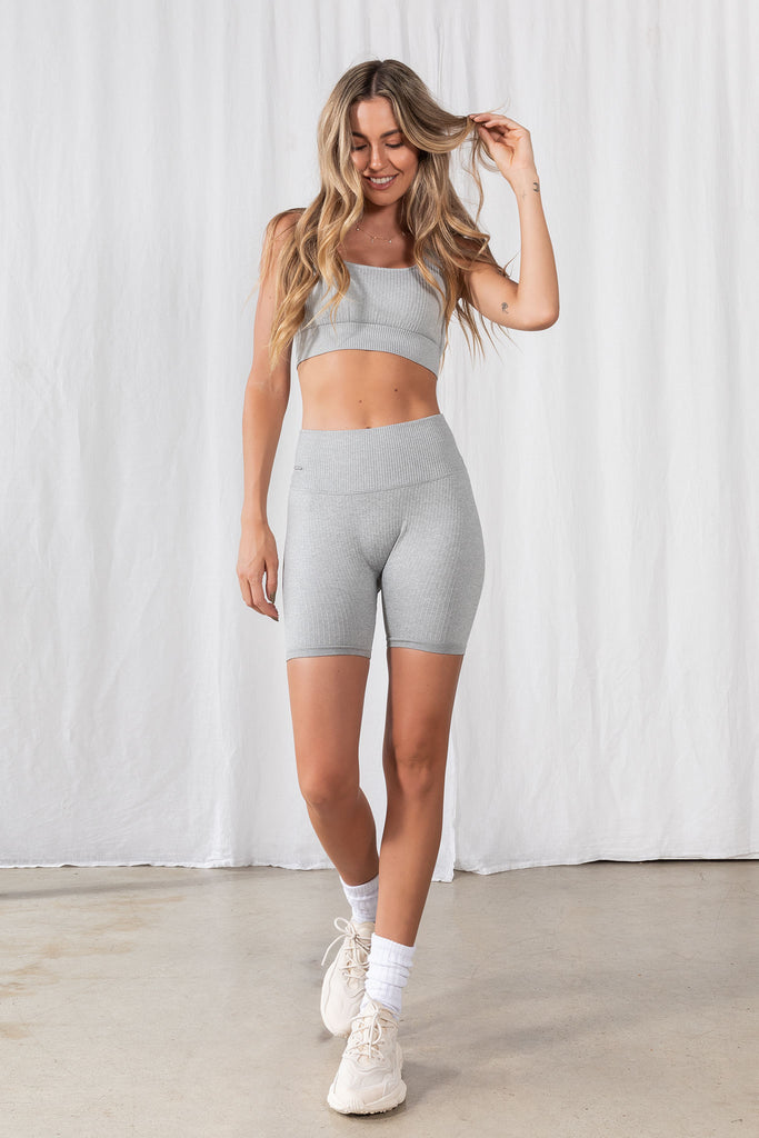 Seamless Ribbed Gym Short in Cloud