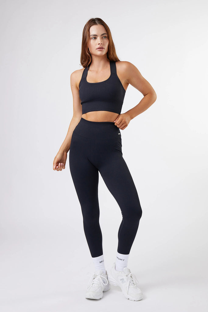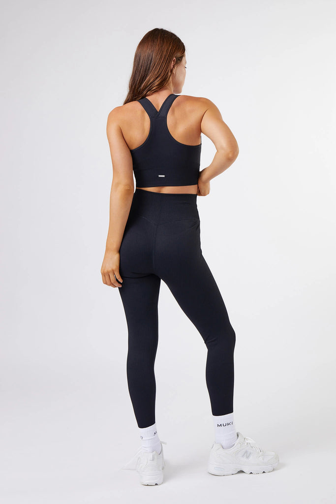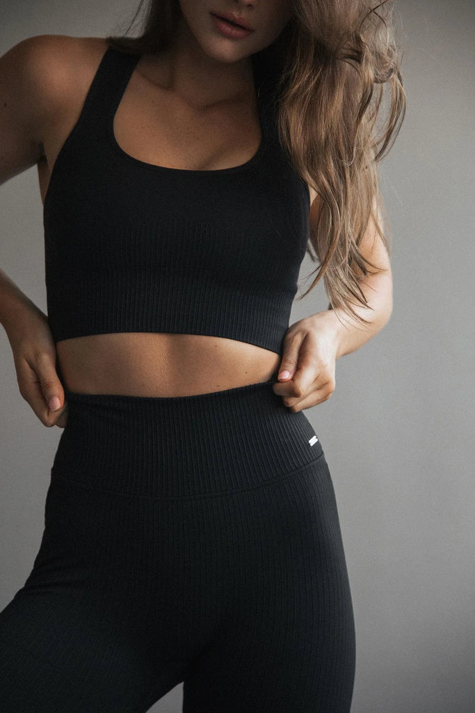 High Support Seamless Ribbed Sports Bra in Black