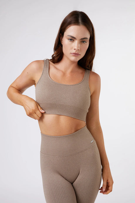 Seamless Ribbed Sports Bra in Latte