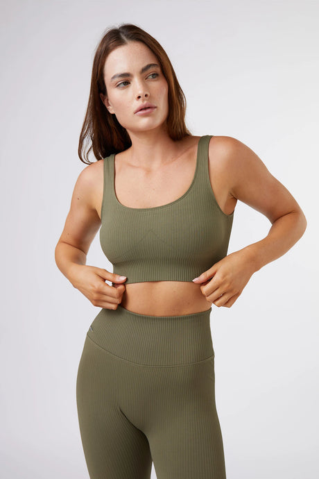Introducing the all-new Seamless Ribbed Sports Bra in Olive Green – now with an improved design and extended sizing options! Experience the perfect blend of style and performance with even better fabric quality and an impeccable fit. The seamless construction ensures ultimate comfort, while the ribbed texture adds a trendy touch to your activewear collection. Whether you’re hitting the gym or lounging at home, this sports bra offers the support and style you need.