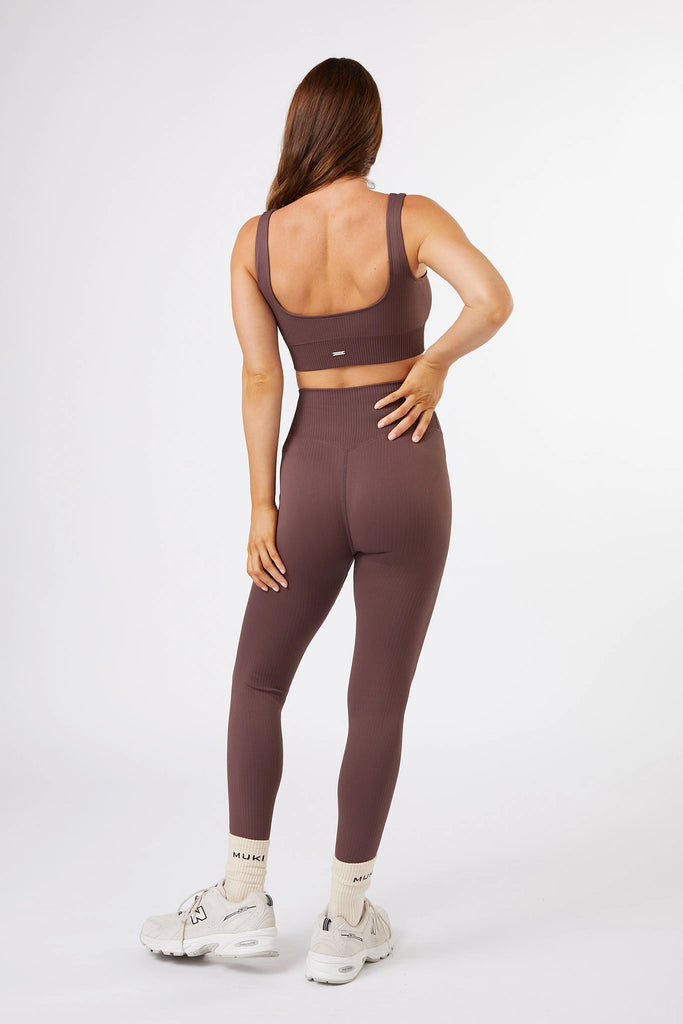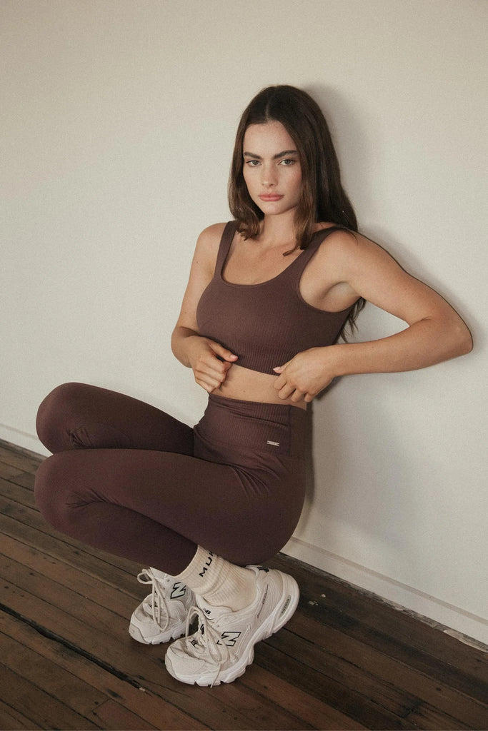 Seamless Ribbed Sports Bra in Chocolate
