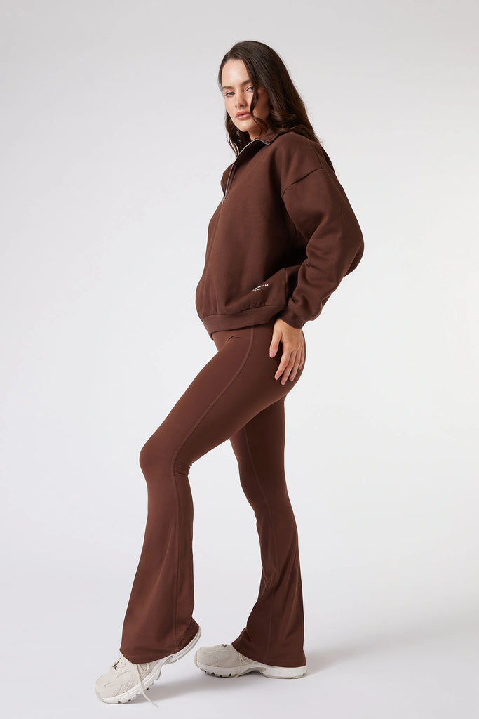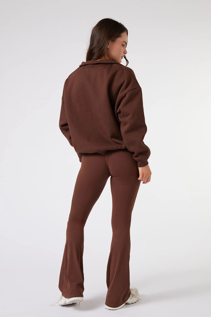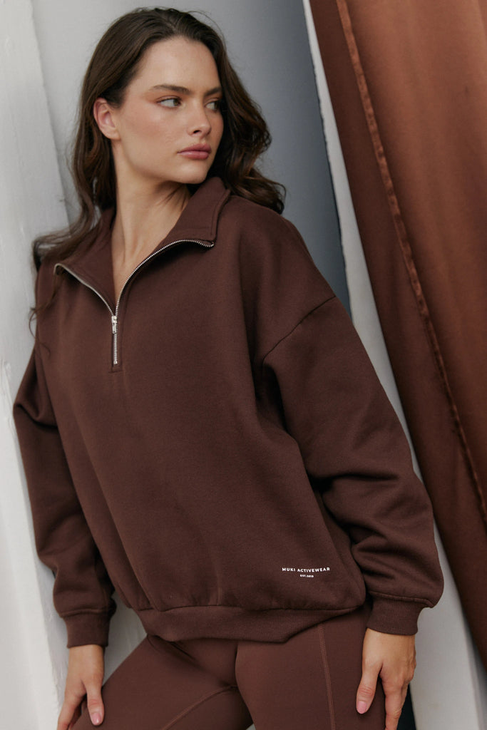 Oversized Fleece Quarter Zip Sweat in Chocolate